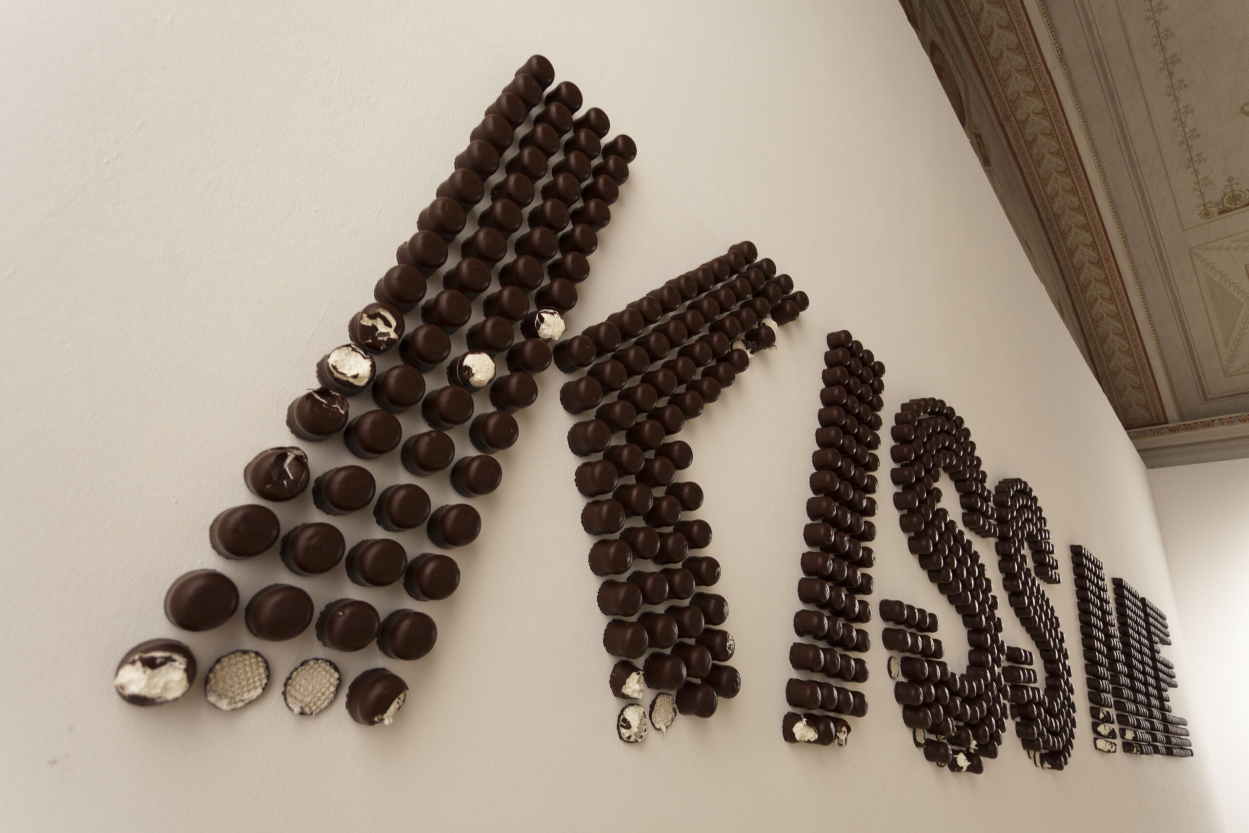 Wandinstallation aus Schokoschaumküssen ca. 600 x 200 cm, Maße variabel